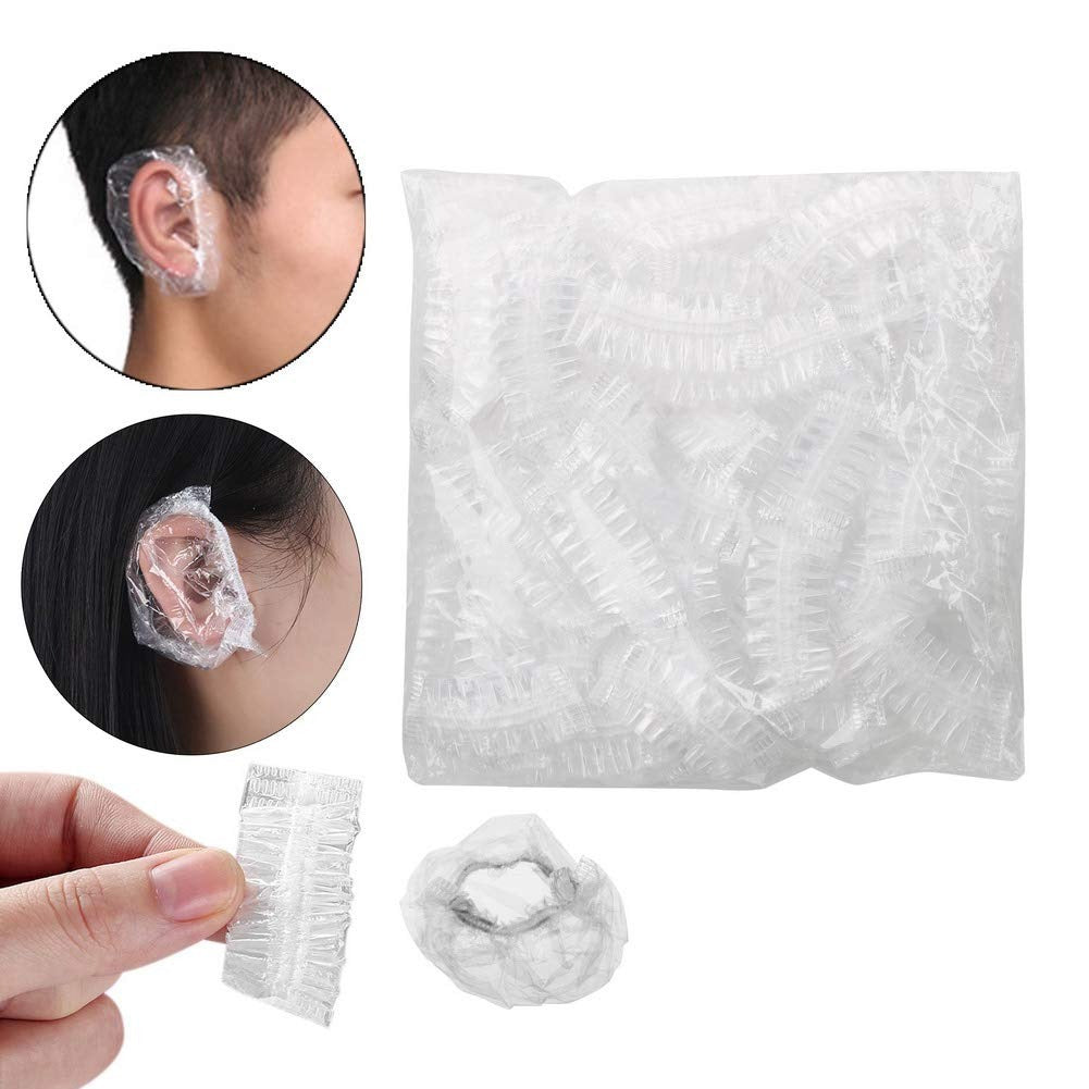 100pcs Clear Ear Covers | Disposable Plastic Ear Protectors for Showering, Hair Dye, and Salon Use